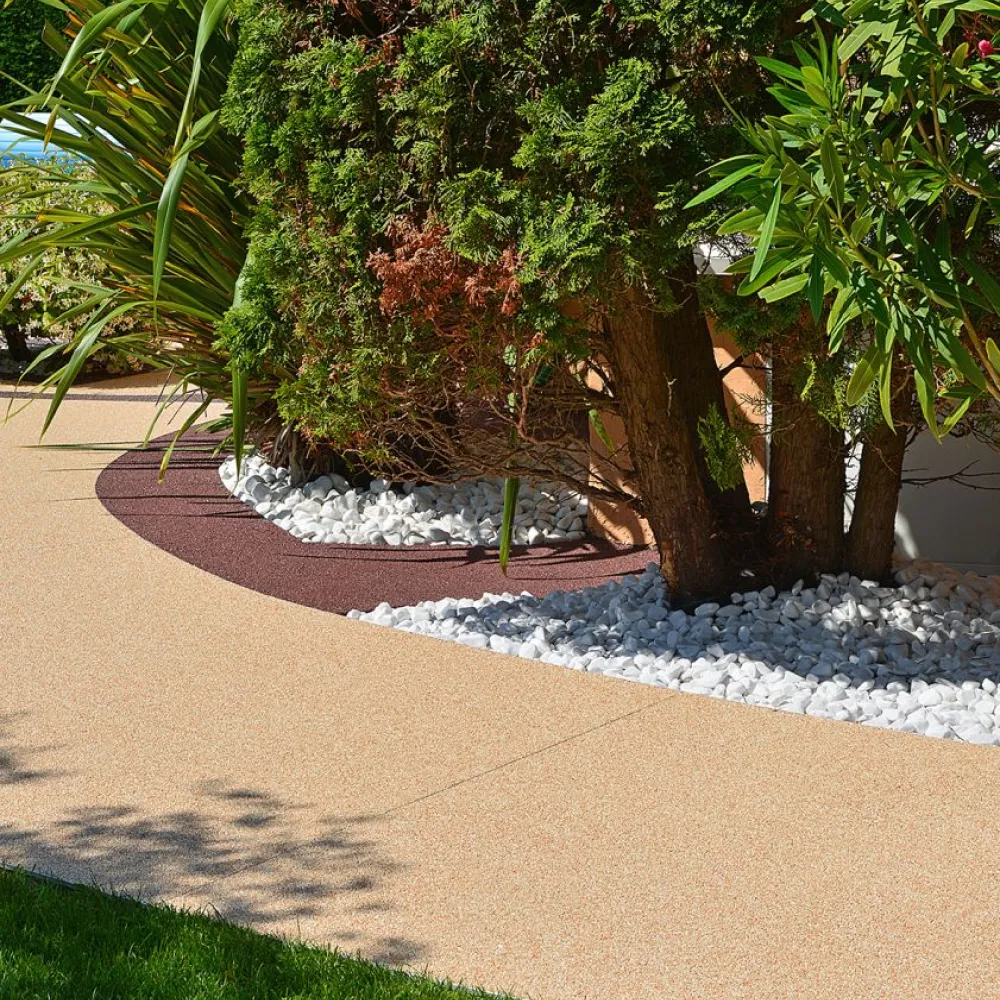 Composée de marbre concassé, tamisé puis aggloméré, cette moquette extérieure est durable et résistante en toutes saisons. Ce revêtement est donc idéal pour aménager un jardin en Vendée, une cour ou une allée.